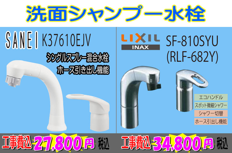 名古屋のシャワー工事専門店リモデルプラス 洗面シャンプー水栓工事費込み27,800円税込~