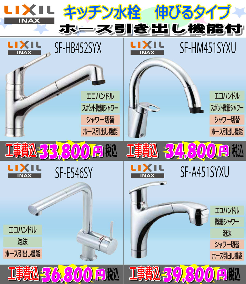 INAXホース引き出し機能付きキッチン水栓 工事費込み33,800円税込~