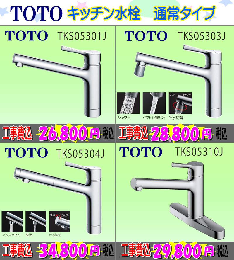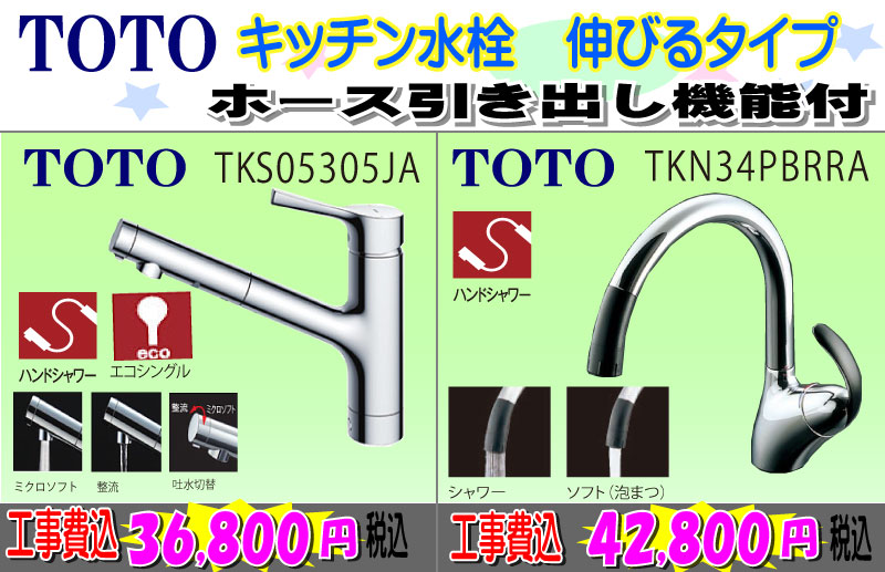 TOTOホース引き出し機能付きキッチン水栓 工事費込み36,800円税込~
