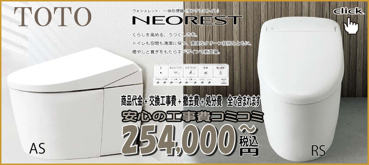 TOTOタンクレストイレNEOREST 工事費込み254,000円税込~