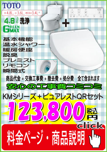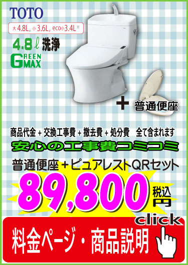 TOTOピュアレストQRフチレストイレ・トルネード洗浄 工事費込み89,800円税込~