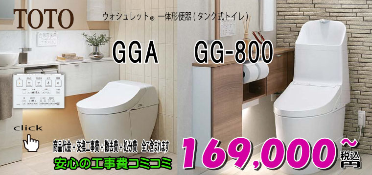 TOTO一体型便器 GGA/GG-800 工事費込み169,000円税込~